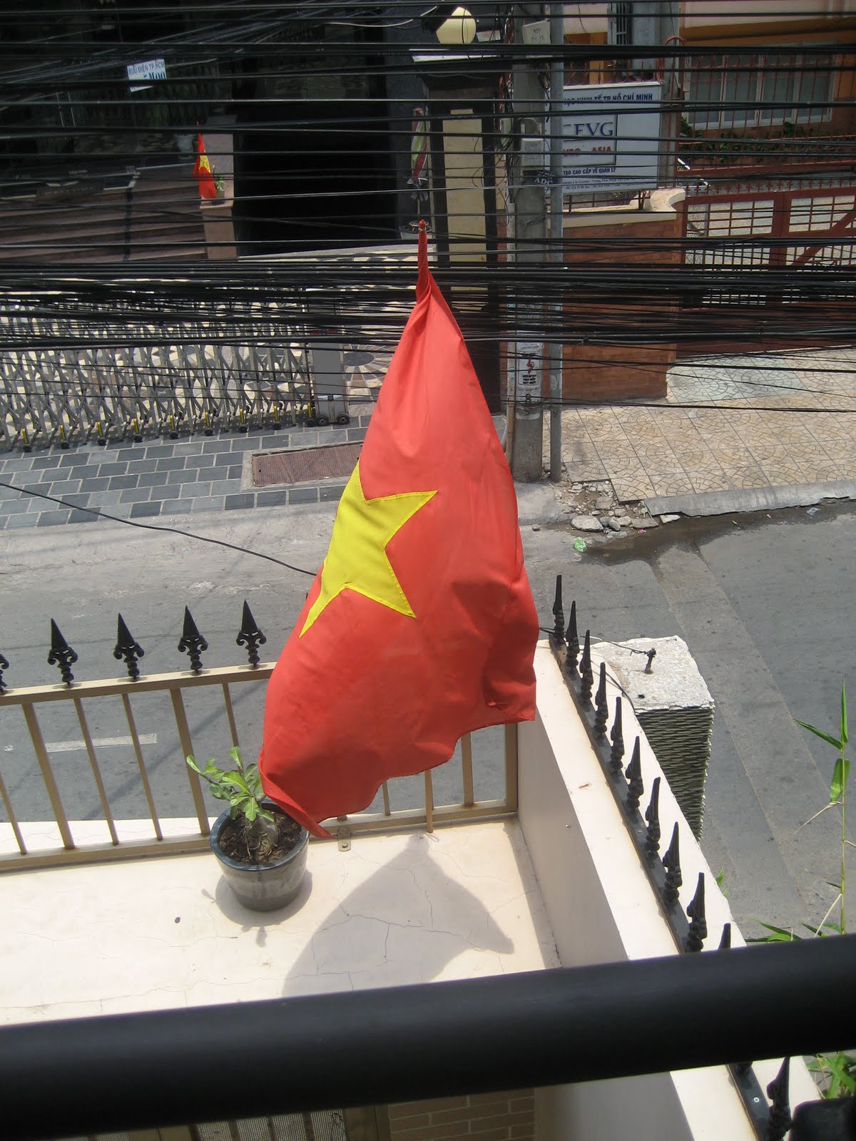 April 30 is Vietnam’s Fourth of July – Liberation Day. It’s huge – parades, fireworks, political posturing, red and yellow banners on every tree and the red Vietnamese flag with the big yellow star flying from every house, including ours. It’s a four day holiday that includes May Day. Thirty five years after the fall of Saigon the old Embassy buildings are gone. Fifteen years ago the US and the Socialist Republic of Vietnam resumed diplomatic relations. Vietnam returned the property where the US Embassy stood and a new Consulate was erected. We went to a lawn party there recently and the Consul General addressed the mixed group of global citizens in perfect Vietnamese.